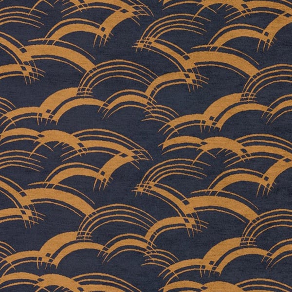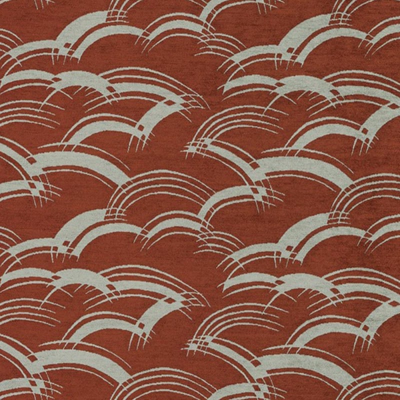 Sur le tissu Velours Ike, des arcs se croisent et se superposent dans un rythme maîtrisé. Le motif, répété avec régularité, évoque des ondes stylisées ou des courants d’air en mouvement. Les formes s’enchaînent avec fluidité dans une structure presque chorégraphique. La surface dévoile une texture visuelle riche, qui renforce la dynamique du tracé. Nobilis traduit ici une esthétique contemporaine, entre tension et légèreté.