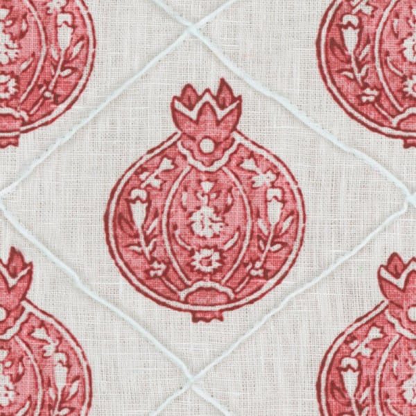 Granada est un tissu au motif ornemental imaginé par Zimmer + Rohde. Des grenades stylisées se répètent avec régularité, encadrées par un tracé géométrique discret. Inspirée des arts décoratifs classiques, chaque figure révèle une composition symétrique de feuillages et de formes florales. L’ensemble forme une trame rythmée, à la fois structurée et expressive.