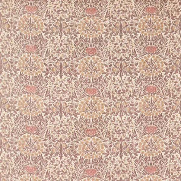 Daisy & Oak Warp Print Fabric est un tissu au motif floral stylisé, conçu dans l'esprit du mouvement Arts & Crafts. La surface est rythmée par des médaillons végétaux où marguerites et feuillages se répètent avec rigueur. Des branches sinueuses s'élèvent en symétrie, bordées de couronnes feuillues. Chaque détail rend hommage à la minutie de Morris & Co, révélée par un travail sur la chaîne qui organise l’ensemble avec subtilité.