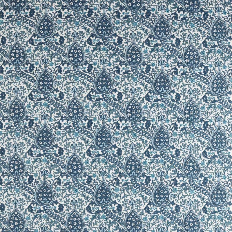 Le tissu Persian Tulip Embroidery dévoile un motif floral stylisé composé de formes en goutte, bordées de tiges sinueuses et de feuillages délicats. Chaque élément central renferme un cœur orné de petites fleurs géométriques, formant un ensemble à la fois dense et raffiné. Le dessin suit une répétition régulière, rythmée par l’enlacement des branches. Cette création signée Morris & Co traduit l’influence perse à travers une composition harmonieuse.