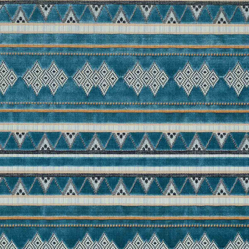Le Velours Vienna présente un motif géométrique audacieux aux détails brodés. Des bandes horizontales structurées et des formes triangulaires régulières évoquent des symboles ethniques stylisés. La composition en velours donne du relief et de la profondeur au dessin. Armani Casa impose une vision raffinée et graphique d’une illustration aux racines traditionnelles.