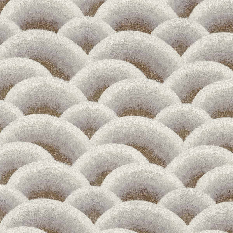 Le tissu Arcus présente un enchaînement régulier d’arcs en éventail qui évoque le mouvement fluide des vagues. Grâce à une broderie minutieuse, le motif géométrique joue sur les effets d’ombre et de lumière. Chaque forme se détache avec douceur, comme animée d’un souffle organique. Casamance explore une esthétique rythmée et hypnotique, portée par l'agencement du dessin.
