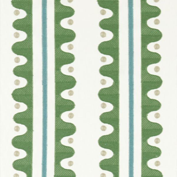 Le tissu Oakham Embroidery présente un motif géométrique, structuré de lignes verticales ondulées aux contours arrondis. De petits points agencés comme de gouttelettes bordent ces figures avec minutie. La broderie des courbes crée une trame à la texture authentique et artisanale. Composée majoritairement de coton naturel, cette étoffe signée Scion exprime un mouvement fluide et répétitif.