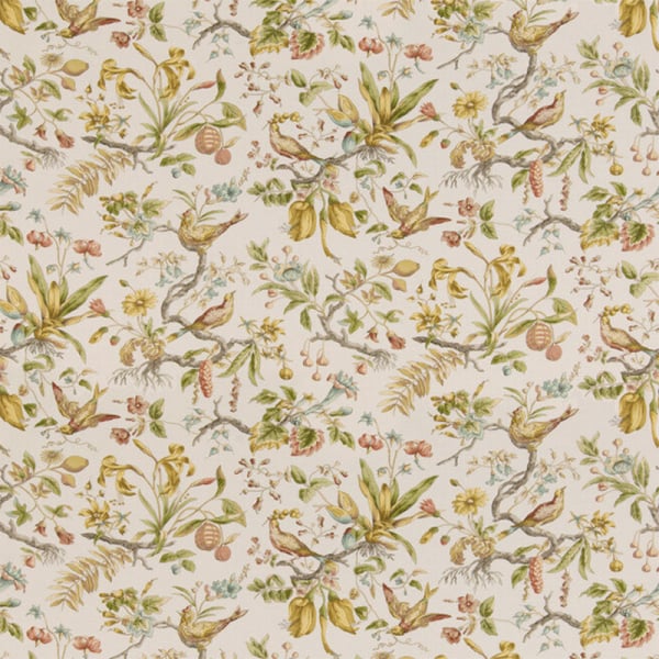 Un motif végétal et animal, riche en détails, parcourt la surface du tissu Kentwell. Ce textile célèbre la luxuriance d’un jardin imaginaire, peuplé d’oiseaux gracieux, de feuillage délicat, entourés de fleurs fines. L’illustration botanique prend vie sur un support entièrement en coton à la texture naturelle. Cette étoffe évoque un paysage ornemental, dense et rythmé.