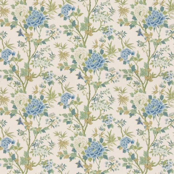 Le tissu Canton présente un motif floral luxuriant, inspiré des arts décoratifs asiatiques. Des tiges sinueuses s’élèvent avec souplesse, portant des pivoines aux contours nets entourées de feuillage délicat. Chaque détail du dessin compose une structure dense à l’équilibre maîtrisé. Signé GP & J Baker, ce textile évoque les jardins anciens et la poésie botanique.