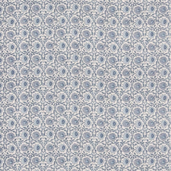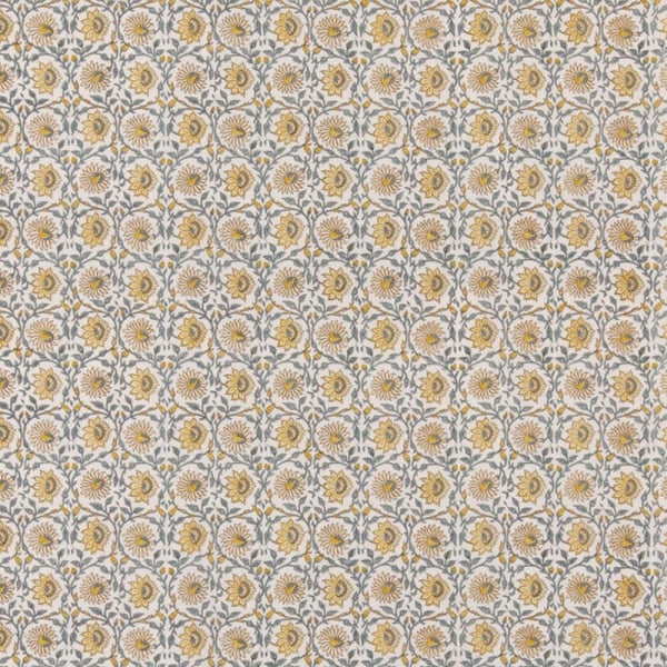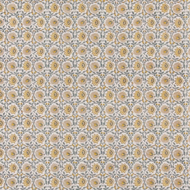 Cecily est un tissu agrémenté d’un motif floral et géométrique en médaillons ordonnés. Chaque forme circulaire encadre une fleur symétrique entourée d’un feuillage ornemental. Posé sur un support en lin, le dessin compose une grille décorative dense et précise. L’ensemble révèle une répétition maîtrisée qui évoque l’esprit textile des arts traditionnels.
