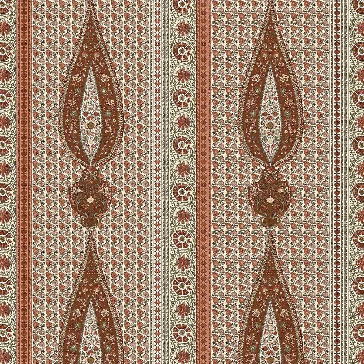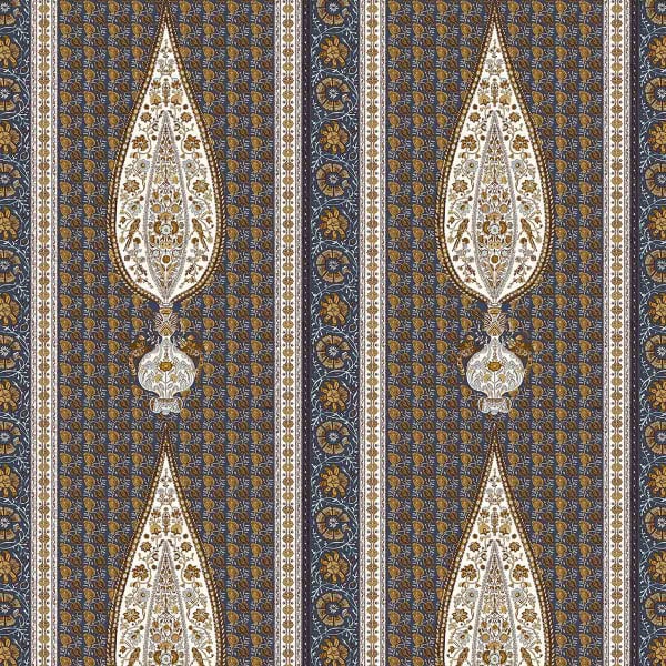 Le tissu Indira révèle un motif ethnique, rythmé par des gouttes et frises entrelacées, inspiré par des dessins orientaux classiques. Signé Gastón y Daniela, ce textile possède une présence visuelle forte et structurée. Les lignes verticales accentuent l’effet de mouvement et de profondeur dans la composition. Chaque détail témoigne d’un sens précis de l’ornement.