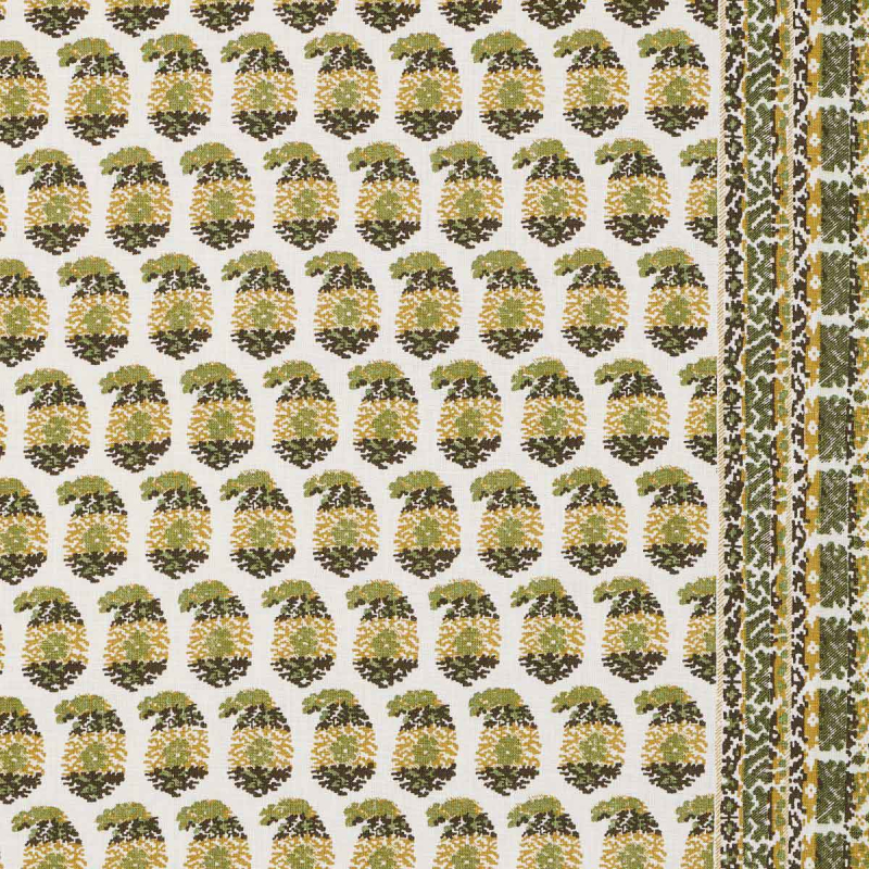 Schumacher presents Terry, a fabric punctuated by a geometric pattern with repeated lines, both structured and vibrant. The design, formed of stylized cashmere and a meticulously worked border, draws its inspiration from an ancient document. Each detail, reactivated with precision, brings the surface to life. The natural and lively texture of the linen gives the whole a tactile presence.