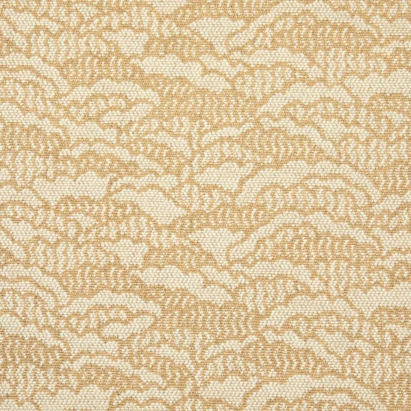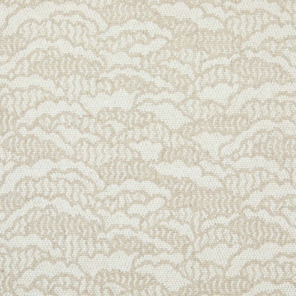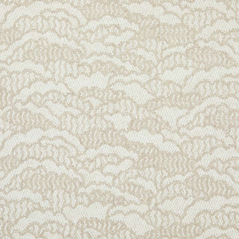 Lelièvre dévoile le tissu Cimes, où un motif végétal finement tracé s’épanouit sur une trame dense et soignée. Sa surface perlée accroche la lumière et révèle un éclat discret à chaque mouvement. Le dessin évoque une canopée tropicale embrasée par les premières lueurs du jour. Partiellement composée de coton, de lin et de laine, cette étoffe mêle textures sèches et toucher feutré.