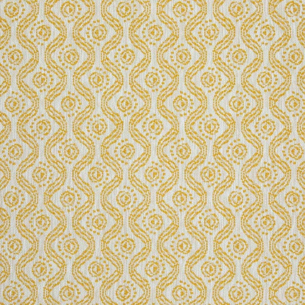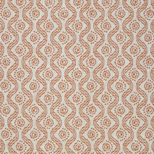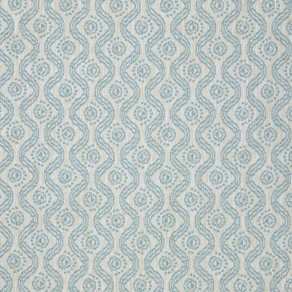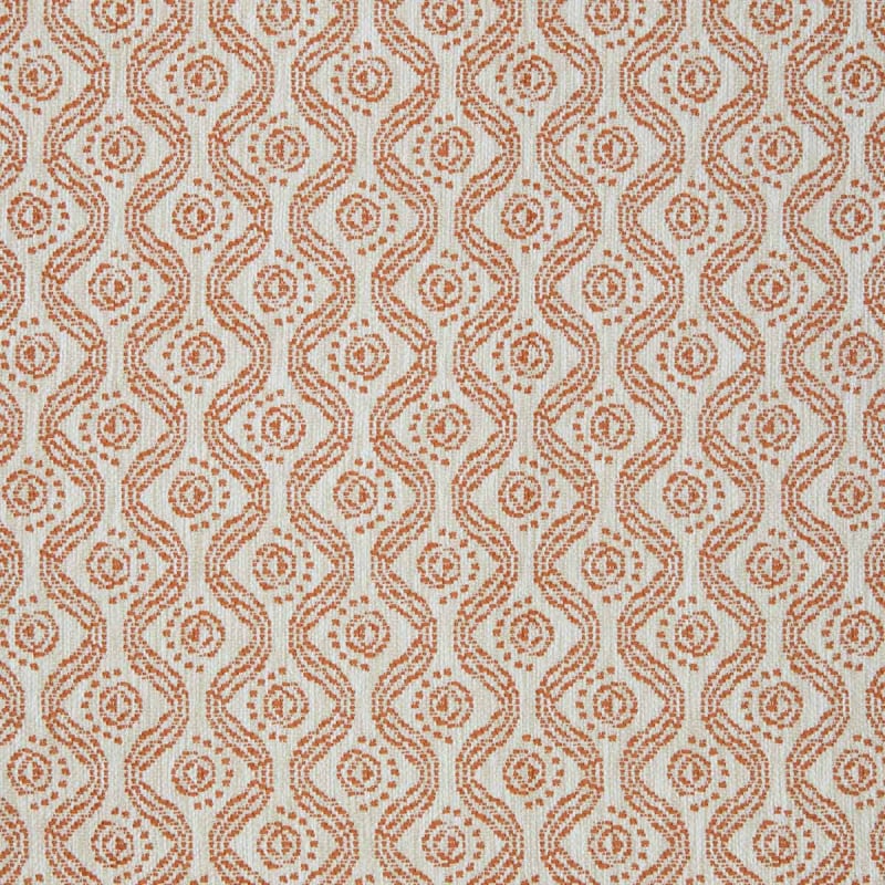 Lelièvre dévoile le tissu Sombrero, dont la trame dessine un chevron irrégulier traversé de formes circulaires. Le motif géométrique se fond dans une texture animée, rythmée par un relief discret. Chaque ligne semble surgir de la matière elle-même, dans une structure douce et tactile. La surface vibre d’un mouvement presque organique.