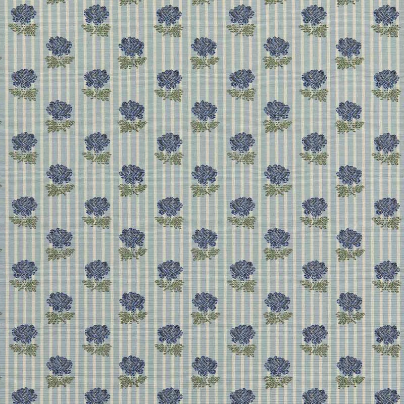 Édité par Quenin, le tissu Exquise évoque une régularité raffinée. Son motif floral stylisé alterne avec une trame de rayures discrètes. Chaque fleur, sobrement esquissée, repose sur un bouquet de feuillage minimaliste. Le coton partiel qui le compose confère à l’étoffe une présence douce, à la fois souple et structurée.