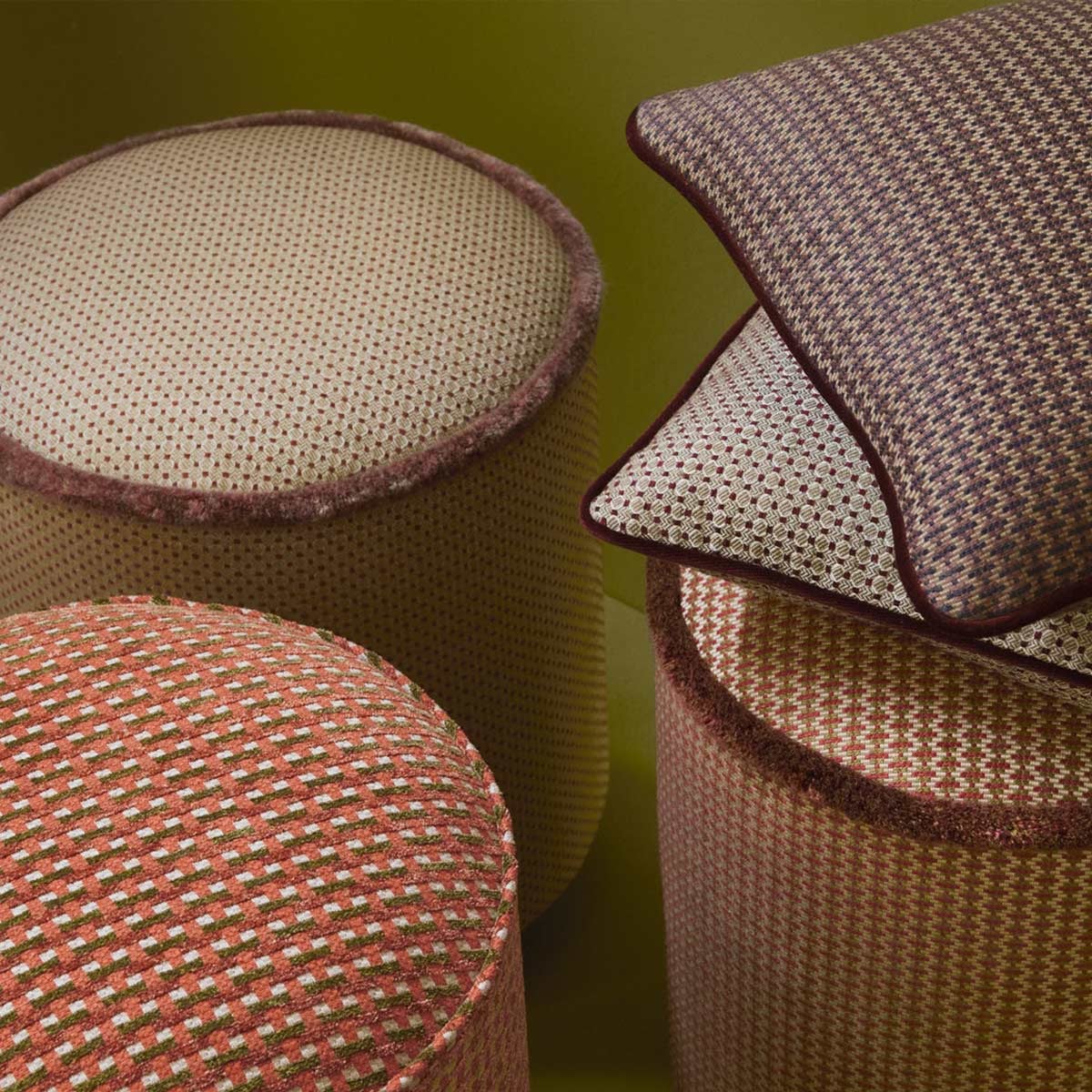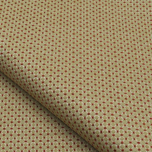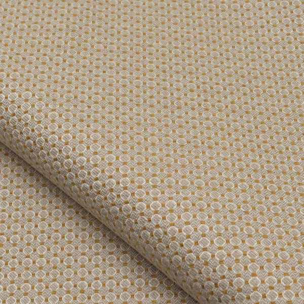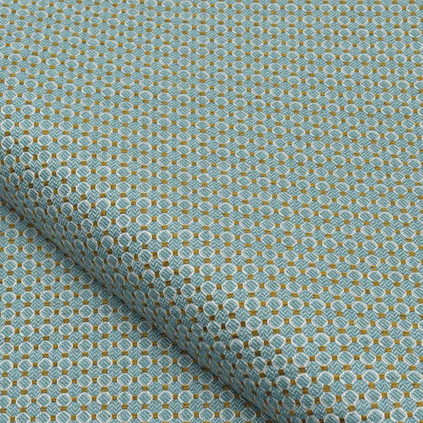 Édité par Nobilis, le tissu Lucca déploie un motif géométrique ciselé avec régularité. Une trame de petits médaillons proches des alvéoles crée la surface dans un rythme à la fois dense et subtil. Chaque forme est soulignée par un fil chenille délicatement irisé, qui insuffle une légère vibration à l’ensemble. Le tissage resserré confère à cette étoffe un relief discret, mais présent.