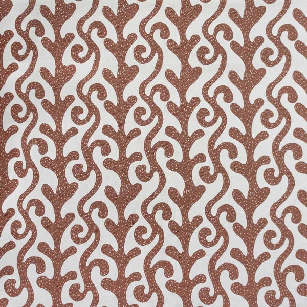 Gastón y Daniela's Saguaro fabric features a geometric, botanical pattern. Delicate, sinuous stems rise in rhythmic swirls, giving rise to a dense, graphic pattern. This textile plays on the contrast between the raised pattern and the softer weave of the background. It features a vibrant, almost organic texture.