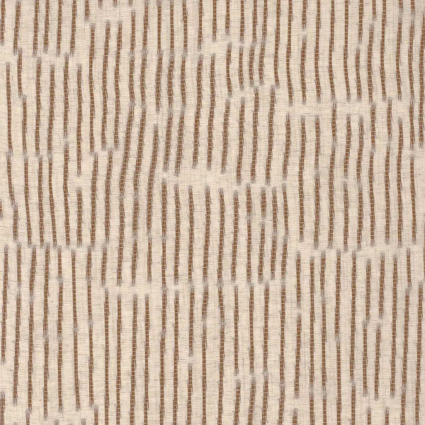 Le voile Interaction présente un motif à rayures dont le rythme vertical se fragmente en segments irréguliers. Le dessin alterne plein et ajour et imprime à la surface une vibration discrète et structurée. Édité par Casamance, ce voile en fil coupé, partiellement en coton et en lin, confère souplesse et relief. Proposé en grande largeur, il déploie le motif avec ampleur et continuité.