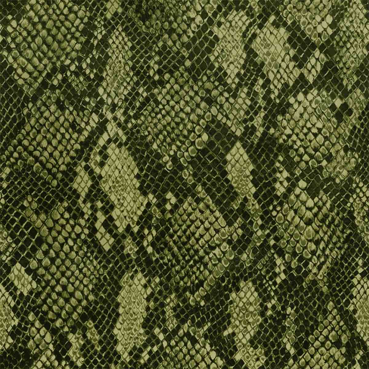 Le velours Cobra est un tissu au motif animalier dont le dessin révèle des écailles inspirées de la peau de serpent. Peintes à la main, ces formes sinueuses composent une surface animée d’un rythme organique. Majoritairement en coton, ce textile développe une profondeur souple et dense. Signé House of Hackney, il affirme une présence tactile où le relief dialogue avec la structure du tissage.