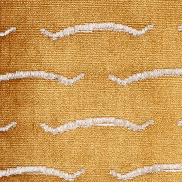 Dedar signe avec Nouvelles Vagues un tissu au motif géométrique, dont les ondulations régulières dessinent une trame hypnotique. Le relief évoque la souplesse du pelage d’un tigre, entre intensité visuelle et vibration tactile. Chaque ligne, traversée de fils lumineux, capte la lumière dans un mouvement discret et maîtrisé. Partiellement composé de coton, ce velours jacquard mêle densité et douceur sensuelle.