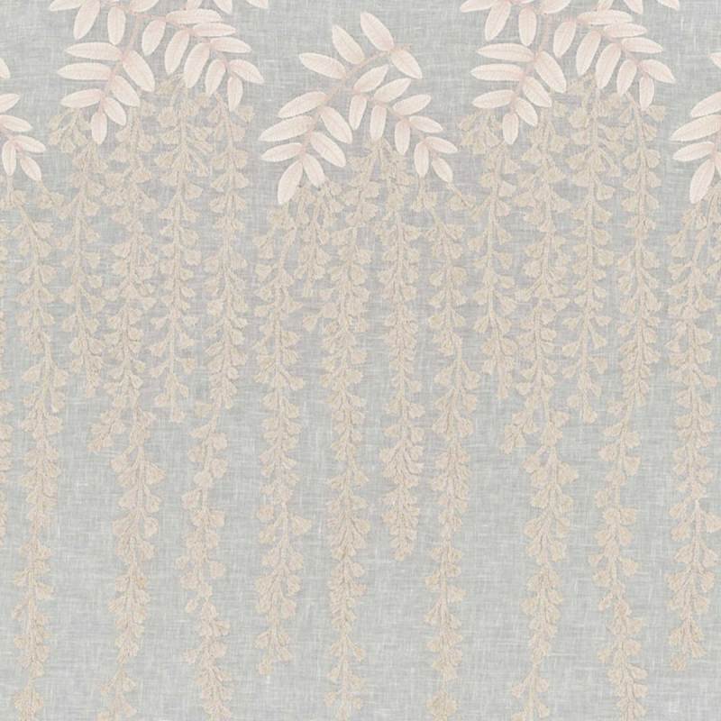 Le tissu Jardin Suspendu affiche un motif floral formé de fines tiges ponctuées de feuilles légères. Le dessin compose un panorama de glycines stylisées, dont les grappes retombent sur un fond subtilement texturé. La broderie délicate imprime à la surface un relief sensible, au toucher feutré. En grande largeur, ce textile signé Étamine réunit coton et lin dans une étoffe ample et respirante.