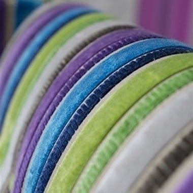 Les rayures colorées et nervurées du velours Savio lui confèrent profondeur et caractère. Ce tissu d'ameublement très résistant est proposé dans une gamme de couleurs audacieuses et toniques imaginées par le studio de Tricia Guild.