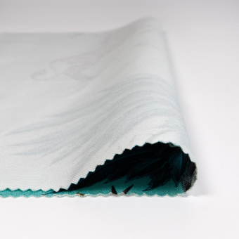 With Creatura, London designer Emma J Shipley designs an original and colorful fabric, edited by the Clarke and Clarke studio. She plays with symmetry and draws two different scenes that repeat themselves over the entire surface of the textile. Like a sacred place, vegetation is at the center of each group. One consists of two zebra unicorns, two hummingbirds, two insects and a sumptuous exotic flower in the center and the other consists of two giraffes with nine tails, two hummingbirds, and a tree with a trunk covered with scales. Strange elements such as precious stones bring mystery to the surrealist whole.