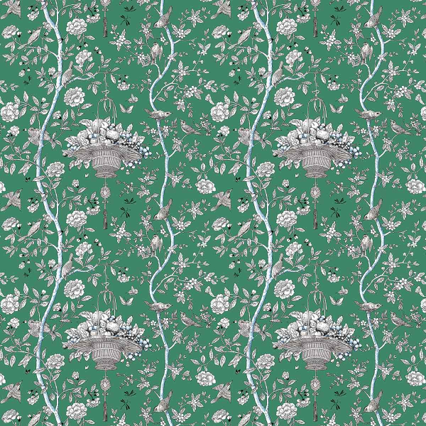 The joys of Spring can be seen in Roger fabric, a Gaston Y Daniela design printed on cotton and linen. The figures, designed by Lorenzo Castillo, illustrate baskets of fruit suspended between flowering branches, where small birds enliven the scene with their songs and parades. The design has a light, monochrome palette and an oriental charm that refreshes spaces.