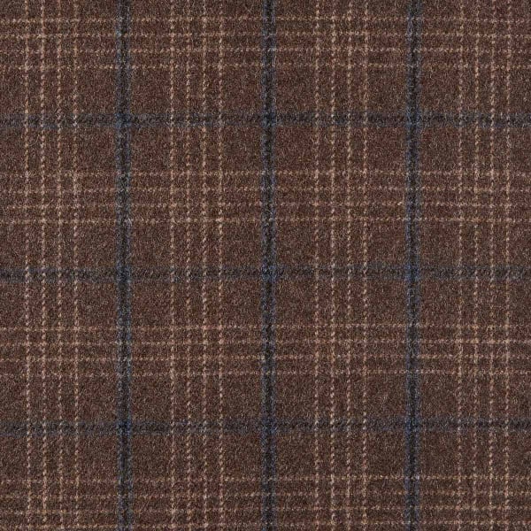 Fischbacher's Benu Check fabric revisits the tartan check pattern in a sober and contemporary version. The regular grid, formed by fine intersecting lines, draws a graphic structure with classic accents. Wide dark vertical bands mark a clear visual rhythm, while lighter threads, drawn in duplicate, add depth. The material reveals a dense and felted texture, enhanced by the attention to detail.