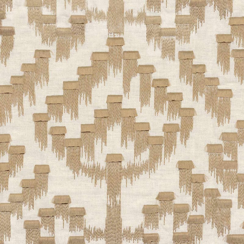 Inspired by the waterfalls of Japan, Akame traces an embroidered geometric pattern with the appearance of a stylized fall. The stepped shapes punctuate the surface of the fabric, like a mineral echo of flowing water. The natural cotton and linen base reinforces the effect of material and depth. At Casamance, embroidery becomes language, sculpting each line with rigor and poetry.