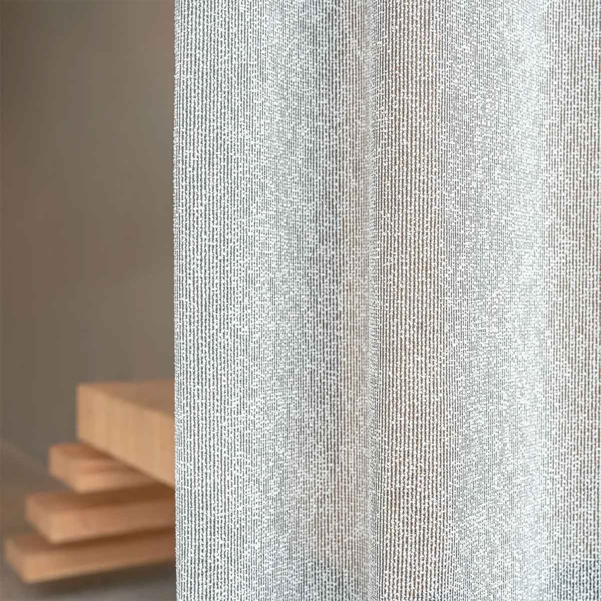 Toby, a veil by Vescom, reveals a faux-uni pattern formed by irregular vertical streaks. The openwork weave lets light through and gives the surface an airy presence. The structure creates a discreet graphic effect, made of subtle contrasts between opacity and transparency. This textile expresses the richness of a minimalist style, worked in detail.