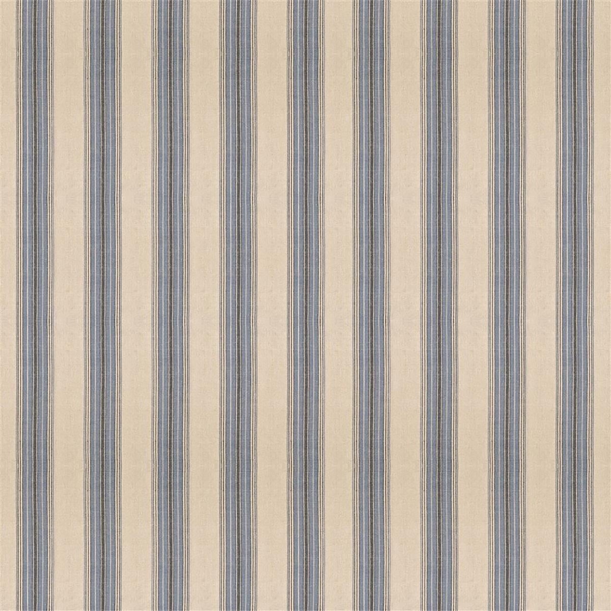 The Loire fabric by Designers Guild reveals a vertical striped pattern with a regular rhythm. Thin bands alternate with wider lines, underlined by delicate parallel threads. Each sequence rests on a subtly textured light background where a measured cadence is established, nuanced by variations in thickness.