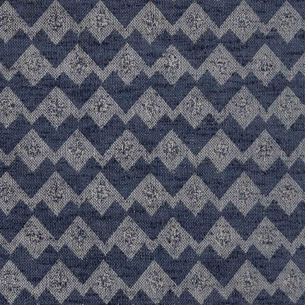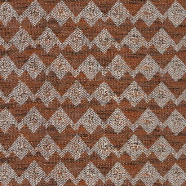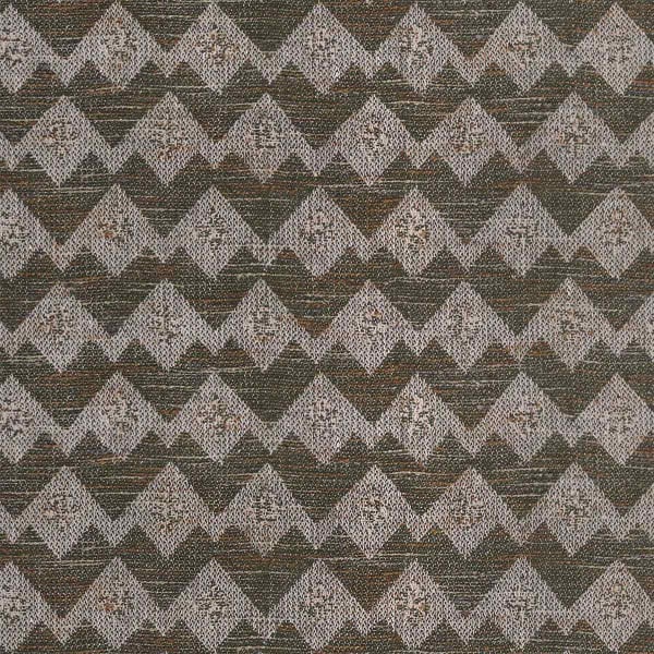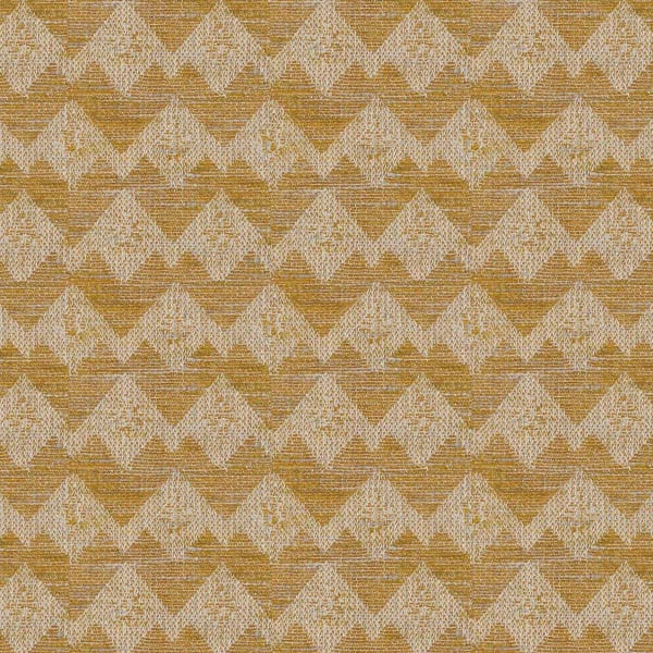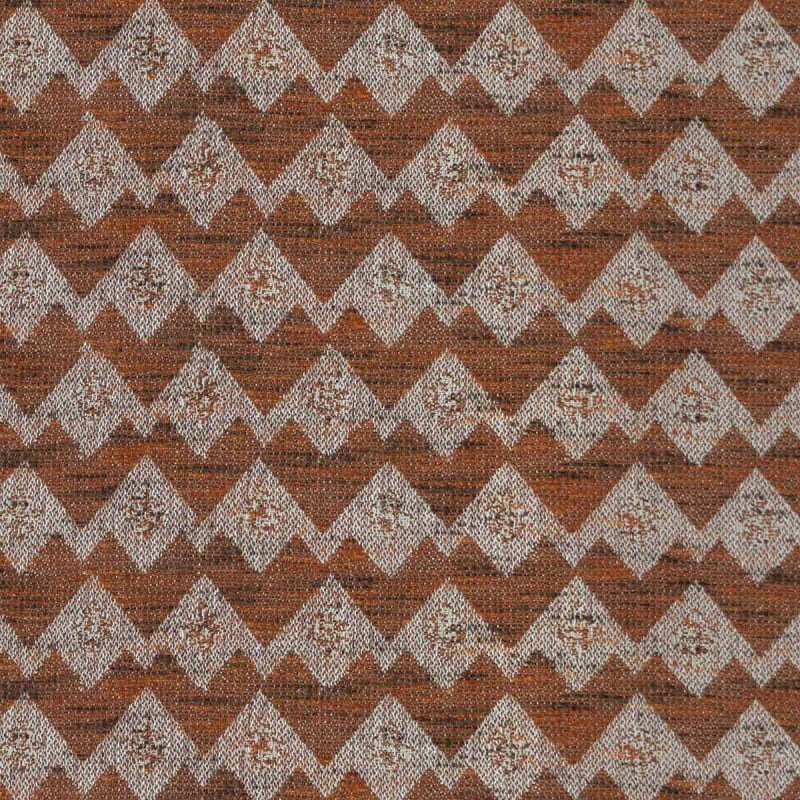 The Wyatt fabric features a geometric pattern with zigzag lines, punctuated by small, stylized emblems arranged in a regular, rhythmic pattern. Together, these elements form a dense weave with graphic, tribal accents. The weave combines recycled cotton, jute, and wool to create a textured, robust, and vibrant fabric. Designed by Gastón y Daniela, this textile evokes the raw gesture embedded in each stitch.