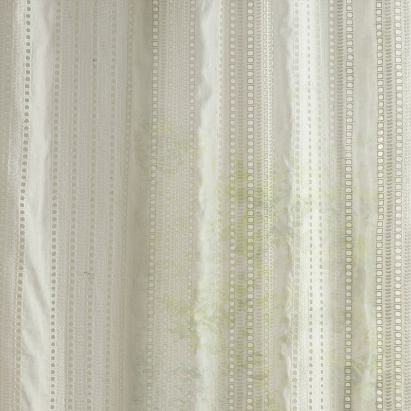 Sanderson’s Mellita voile features a geometric pattern of wide stripes, accentuated by a delicate weave. Each line is woven with openwork eyelets, enhanced by exceptionally delicate English embroidery. Light flows freely, softened by the richness of the textures. This fabric is crafted from a lightweight blend of linen and cotton, with a soft, natural feel.