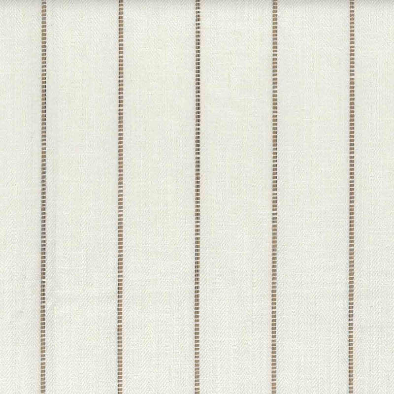 Casamance's Proportion fabric features a striped pattern whose vertical rhythm subtly structures the surface. The pattern reveals a delicate herringbone background, crisscrossed by fine lines punctuated by small, regular segments. This understated structure establishes a visual rhythm that is almost silent. Partly composed of cotton and linen, this textile embodies a natural material with a soft, vibrant feel.