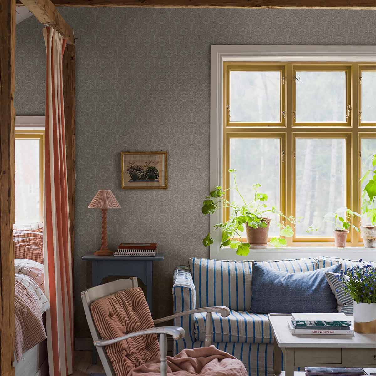 Immerse yourself in the spirit of the 1960s with this high-end wallpaper, inspired by an iconic fabric designed by Viola Gråsten in 1962. This pattern, both modern and timeless, elegantly revisits the aesthetic of this era while integrating perfectly into contemporary interiors.