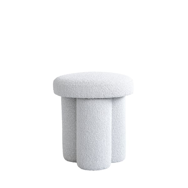 With its three cylindrical legs, the Big Foot Bouclé seat evokes a primitive and sculptural form. Its rounded silhouette is dressed in a textured fabric with a dense feel. This stool plays with texture to create a warm and imposing presence. Signed 101 Copenhagen, each element is part of a stable and balanced architectural composition.