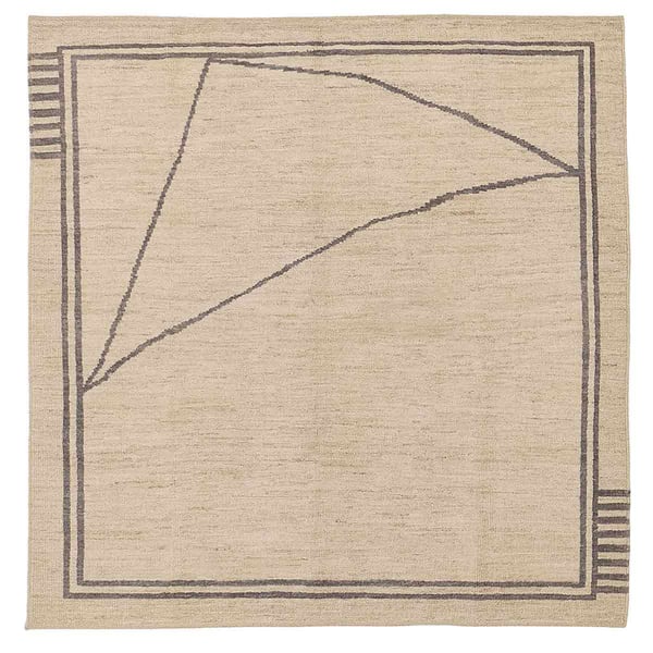 Capricorn, un tapis de Christopher Farr, dévoile un motif géométrique abstrait libre et affirmé. Un enchevêtrement de lignes droites fait émerger un triangle asymétrique, placé au cœur d’un cadre ouvert. Chaque trait révèle l’imperfection du dessin, adoucie par la texture dense de la laine naturelle. Cette composition, nouée main, conjugue rigueur et spontanéité dans un geste instinctif.