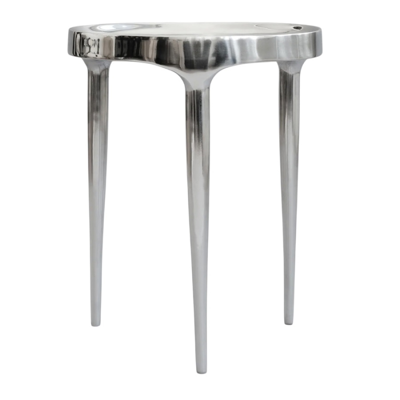 Designed by 101 Copenhagen, the Phantom Tall Chrome side table imposes a silent rhythm with its great height. Made of cast aluminum, it has a slim silhouette, where the visual lightness contrasts with the density of the metal. Its sculptural motif, carved from the raw material, reveals an irregular texture. Each line is frozen in a fluid movement, between artisanal gesture and natural form.