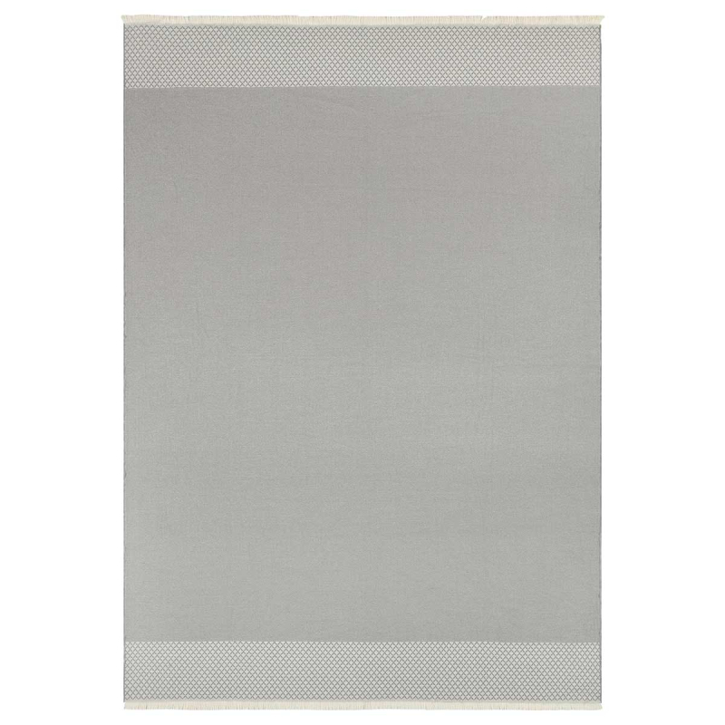 The Lea plaid is a blanket composed of a solid surface framed by a geometric pattern. The borders stand out for their rhythmic regularity, which contrasts with the sobriety of the center. The design reverses the tones on both sides and introduces a soothing visual game. Villa Nova creates a model with a discreet and minimalist structure.