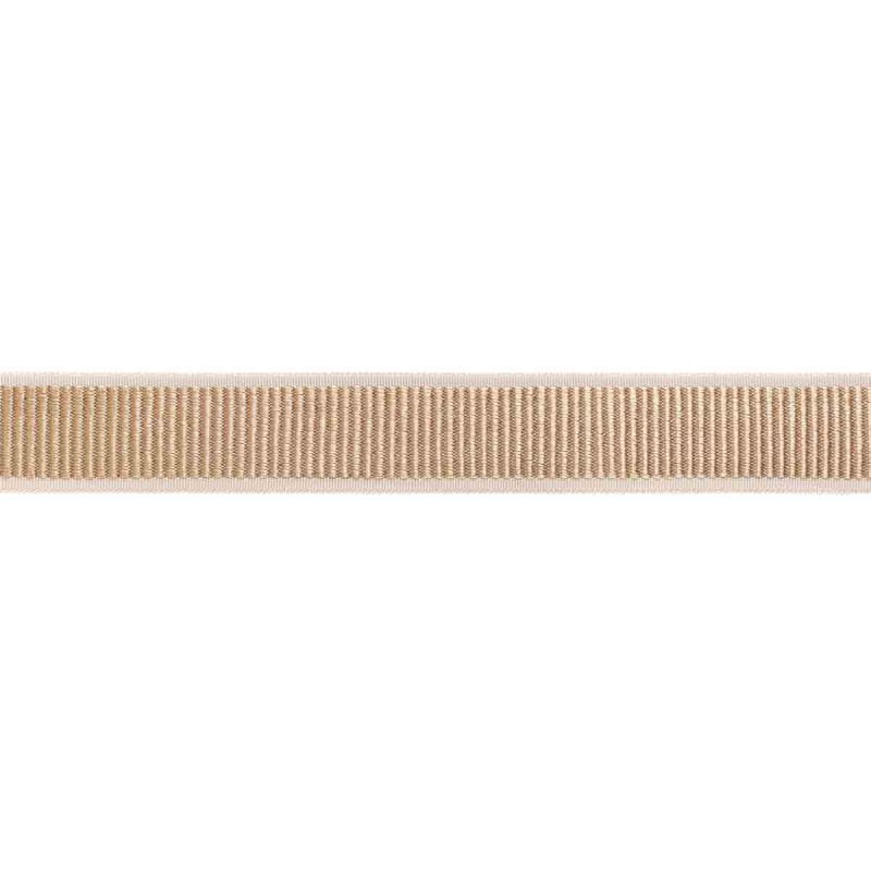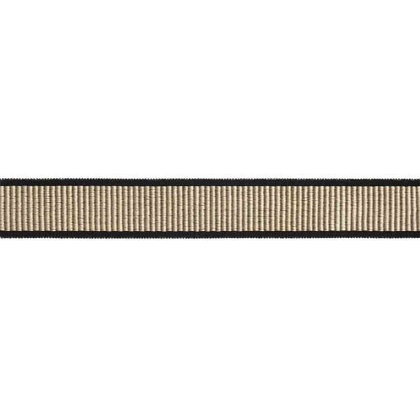 The Houlès Arpège Braid features a rhythmic aesthetic, with fine stripes coming to life within a regular weave. This geometric-patterned design features precisely embroidered lines that create a flexible, structured texture. Its dense weave conveys a sense of balance and calm. A subtle border frames the whole design, creating a sense of controlled continuity.
