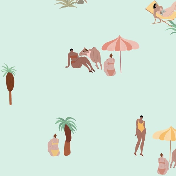 Through a simple drawing, One Day at the Beach features women in bathing suits who enjoy the beach. Some take a sunbath while others enjoy the view under the parasols. Designed by Isabelle Feliu, this panel invites to relaxation, away from everyday life.
