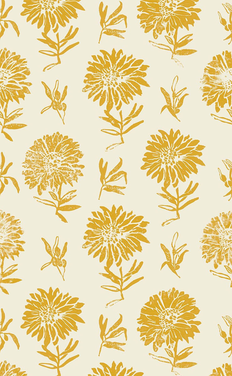 The Parterre floral wallpaper reveals a sophisticated charm with its sunflowers arranged in a balanced symmetry. The monochromatic pattern contrasts with a solid background. With its classic and vintage style, this Coordonné wall decor brings an energetic, warm, and inviting ambiance to living spaces.