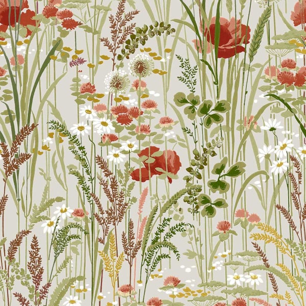 The Pradera wallpaper by Coordonné is a lush and spring-like work of art that invites nature indoors. The floral pattern is drawn with an abundance of poppies and wildflowers, creating a spring-like ambiance with a spontaneous effect. The soft colors of the pattern contrast with the background, adding depth and texture to the overall design.