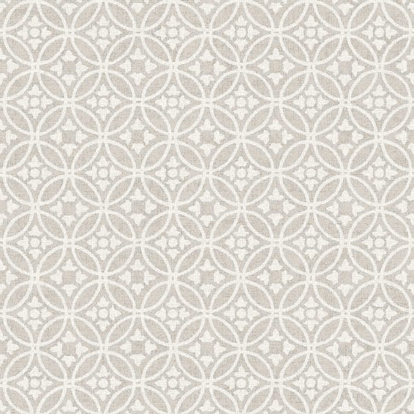 Larsson wallpaper features overlapping circles, inspired by the Japanese motifs that influenced Art Nouveau. The intertwining circles are enhanced by 4 ivy leaves arranged in petals. A-Street Prints offers here a neutral monochrome palette with minimalist appeal. The whole is presented on a textile-like background, bringing a discreet texture to the walls.