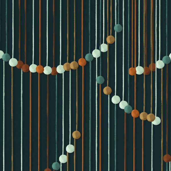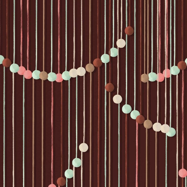 Interiors take on a festive ambiance with Seville, an eco-friendly wallpaper by Raccord Parfait. The pattern, inspired by the mobiles of Alexander Calder and Joan Miró, illustrates a Sevillian sky adorned with multicolored garlands. This annual spectacle brightens the Andalusian capital during the Feria de Abril, ending in a grand fireworks display. It leaves behind cherished memories, immortalized on a wall bursting with color and emotion.