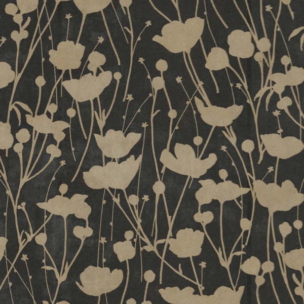 Stylized poppy silhouettes unfold in a graceful ballet on the Shimmering Poppies wallpaper. The floral pattern, inspired by nature, plays on subtle contrasts between the matte and metallic sparkles of the leaves. Each stem, slightly curved, rises in rhythm on a plain background. This York wall covering instills a soothing visual harmony.