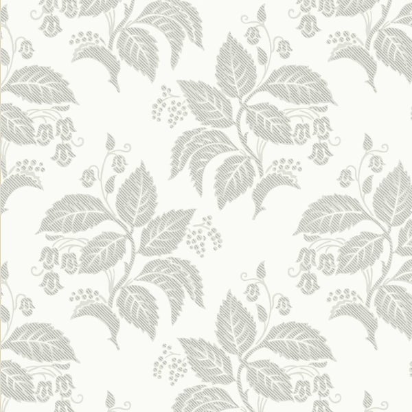 Tengbergska wallpaper is a 19th century wall covering with a large-scale floral pattern. It mixes sinuous stems, round berries and drooping corollas in a plant interlace of great delicacy. The ribbed leaves and flowers give rise to a subtle texture on the surface. Signed Boråstapeter, this model accompanies the walls with a soft presence.