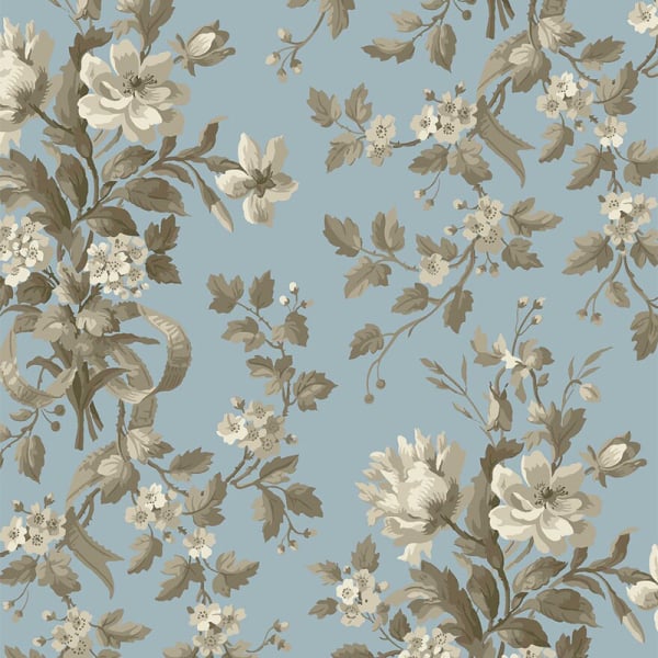 Tullgarn wallpaper features a classic floral pattern composed of bouquets of anemones and hawthorn. Signed Boråstapeter, the repeating design is inspired by an old illustration preserved in the eponymous castle. The flowers bloom with grace, underlined by a delicate line and a subtle shading. Each connection extends the plant cadence with a soothing regularity.