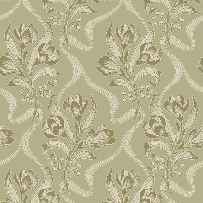 Jugendbukett wallpaper reveals a large floral pattern designed by Boråstapeter. Large stylized corollas open in the middle of sinuous foliage and compose an undulating plant scene. The Art Nouveau spirit of the early20th century is reflected in the flexibility of the design and the harmony of the forms. Each flight dances on the wall, in a decorative score inspired by the natural world.