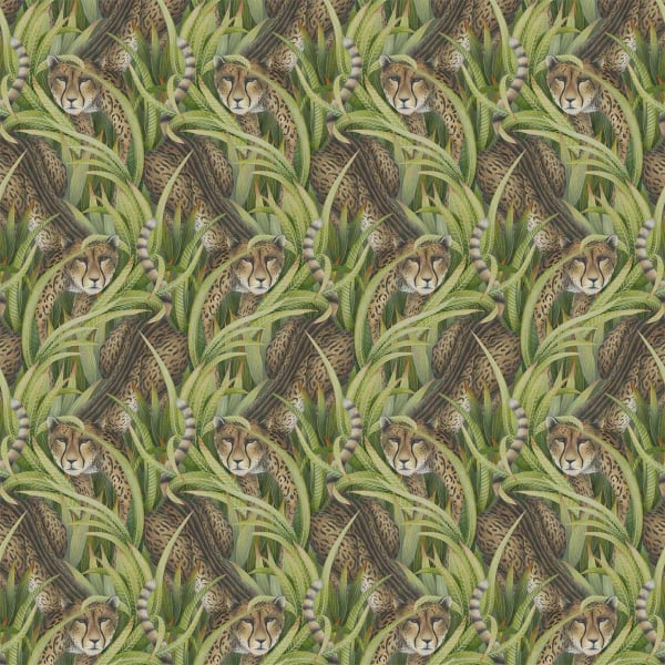 Cheetahs appear in the dense foliage of the Cheetah Prowl wallpaper, a creation by Cole and Son. The animal motif illustrates their silent movement through a stylized jungle, where each leaf stretches in a fluid gesture. The whole plays on depth and rhythm, tracing a living universe. The naturalistic design reveals the grace of the felines and the richness of the decor.