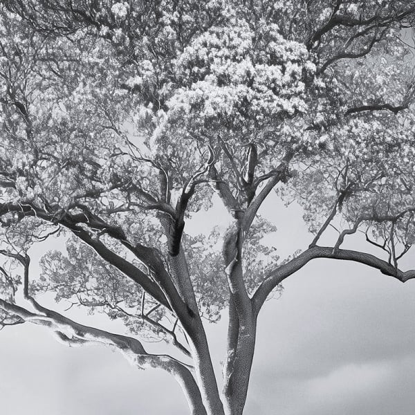 The Silent Witness panoramic wallpaper unfolds a solitary tree with its fan-shaped branches forming an organic pattern. The photographic representation of the foliage and trunk composes a serene scene. This wall covering delicately reproduces the details of the plant and creates a striking visual depth. Signed Londonart, it catches the eye with its contemplative graphics.