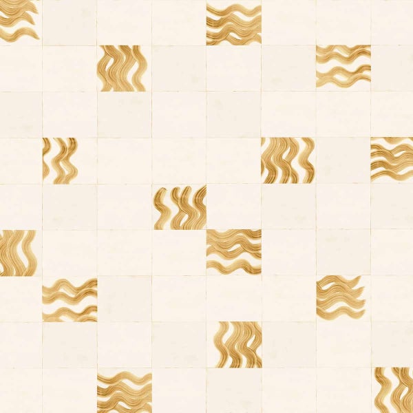 Masureel's Yugen wallpaper juxtaposes plain squares with others crossed by sinuous lines. This geometric pattern, punctuated by stylized undulations, creates a subtle visual rhythm. The alternation between the full and the empty creates a soft and controlled dynamic. This wall decoration reflects a structured aesthetic inspired by Japanese design.
