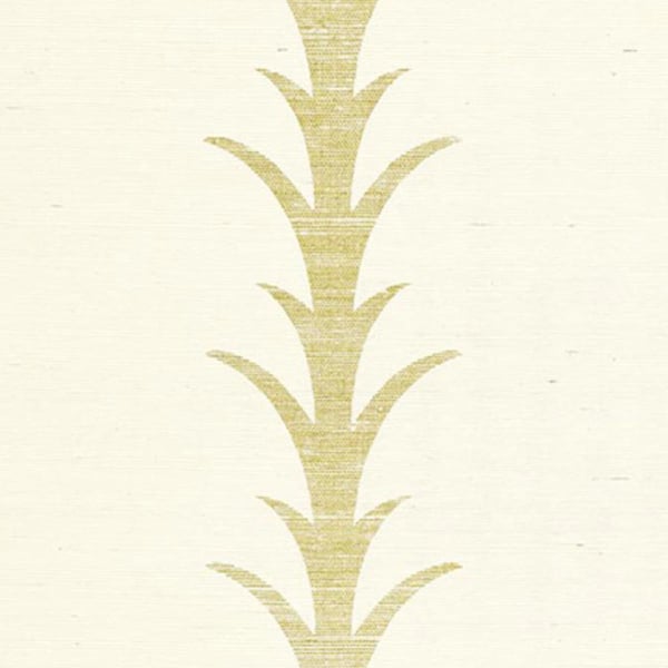 Schumacher's Acanthus Stripe Sisal wallpaper features a vertical, plant-inspired pattern. The composition rests regularly on a natural sisal base, marouflaged on a discreet support. The finely printed design reveals a subtle and lively weave. This coating is reminiscent of stylized acanthus stems and evokes a rhythmic presence, both structured and organic.